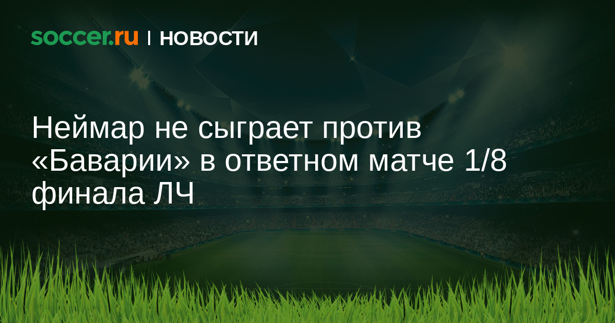 Главный тренер ПСЖ Кристоф Гальтье сообщил, что нападающий Неймар пропустит ответный матч 1/8 финала Лиги чемпионов против «Баварии». Форвард получил травму в игре Лиги 1 против «Лилля» 19 февраля.