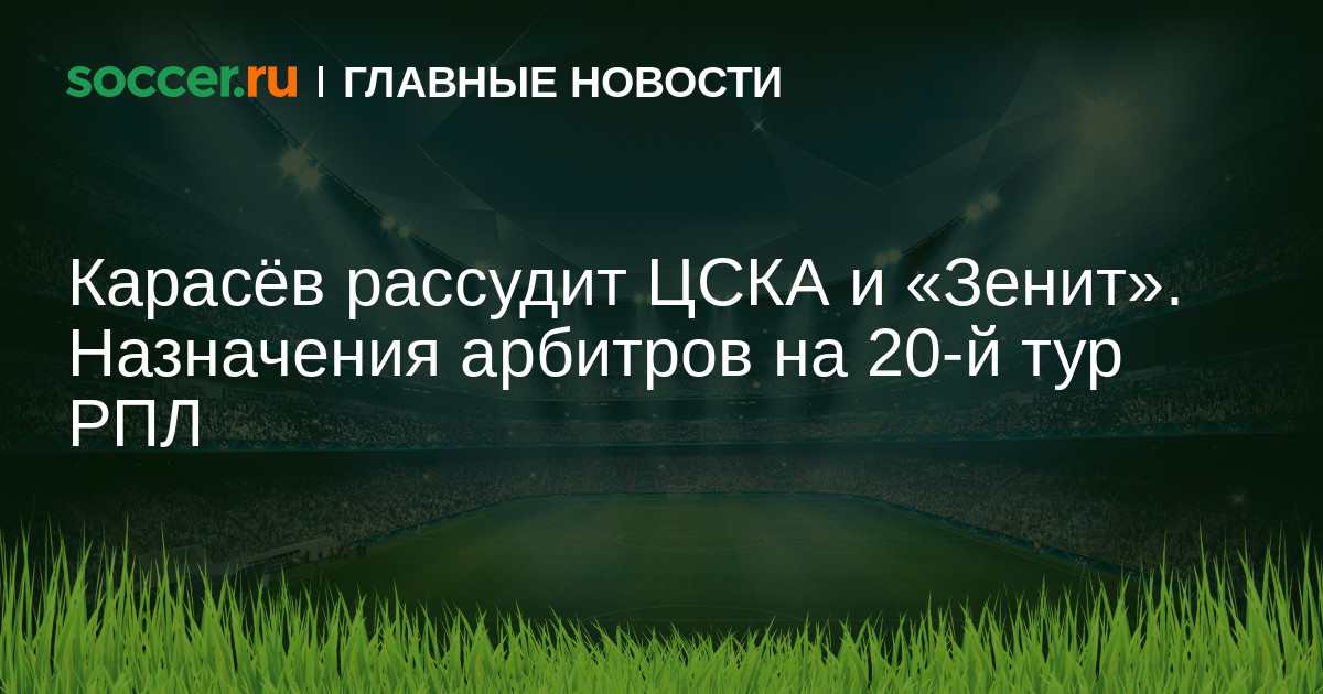 Назначены арбитры и инспекторы на матчи 20-го тура Российской Премьер-Лиги.