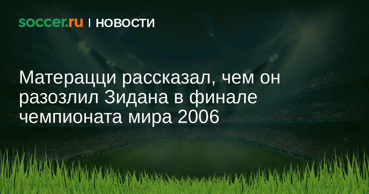 Экс-футболист сборной Италии Марко Матерацци рассказал о том, что именно он заявил бывшему игроку национальной команды Франции Зинедину Зидану в финале чемпионата мира 2006 года. Зидан ударил Матерацци и получил красную карточку. Чемпионом мира стала Италия.