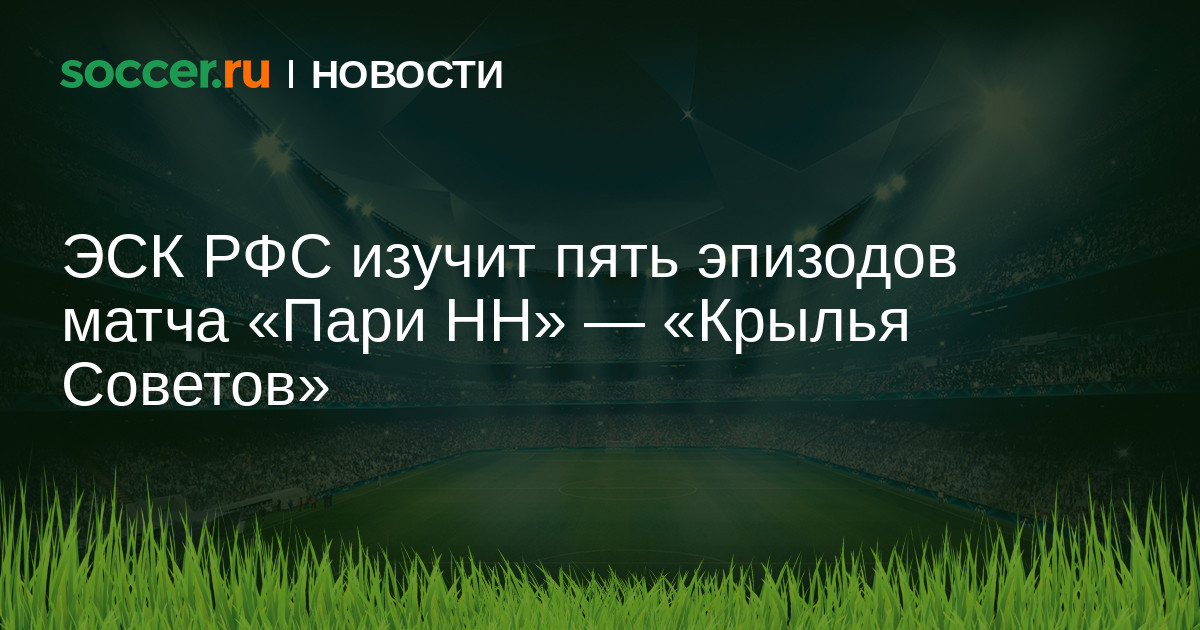 Экспертно-судейская комиссия при президенте Российского футбольного союза (ЭСК РФС) изучит пять эпизодов матча 24-го тура РПЛ «Пари НН» — «Крылья Советов». Об этом во вторник сообщили в службе коммуникаций РФС.