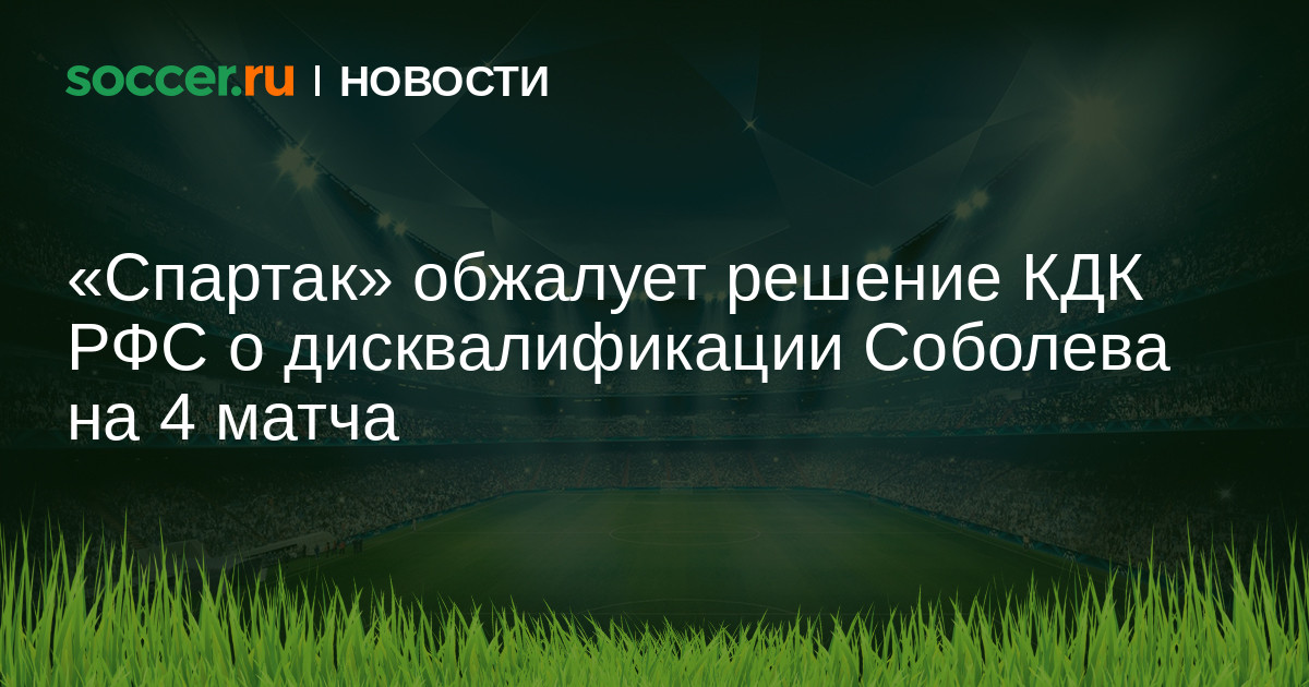 Руководитель пресс-службы «Спартака» Дмитрий Зеленов сообщил о том, что клуб обжалует решение КДК РФС о дисквалификации нападающего Александра Соболева за непристойный жест в адрес защитника ЦСКА Виллиана в матче 28-го тура РПЛ.