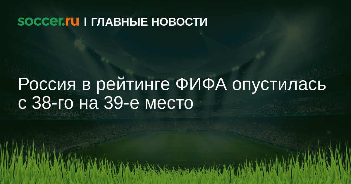 Опубликован обновленный рейтинг ФИФА, в нем Россия теперь занимает 39-ю строчку, а не 38-ю, как это было ранее. Верхняя часть списка выглядит следующим образом: