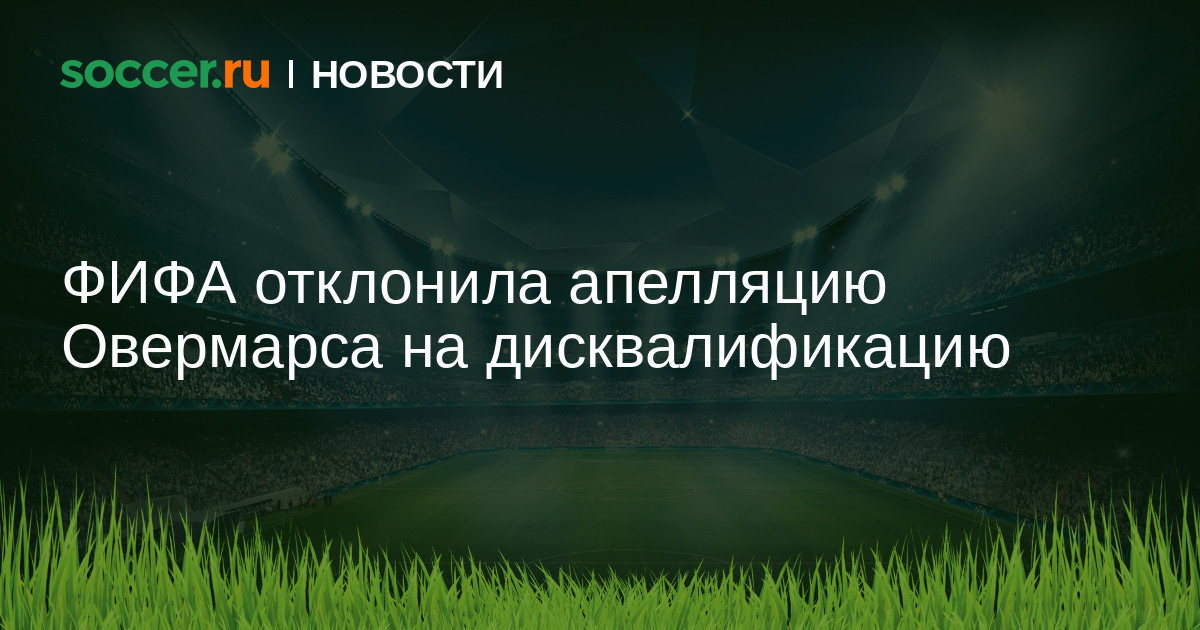 Международная федерация футбола (ФИФА) отклонила апелляцию Марка Овермарса на дисквалификацию. Это подтвердил представитель бывшего игрока сборной Нидерландов Фрэнк Нирворт.