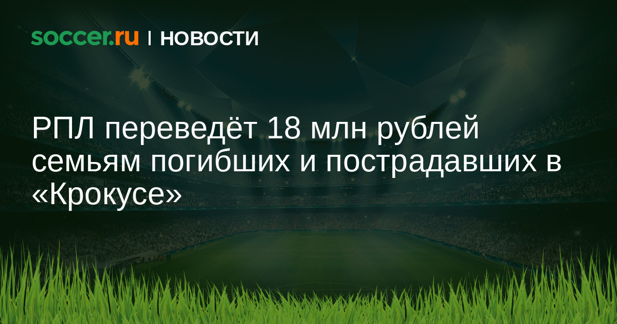 Российская Премьер-Лига перечислит 18 млн рублей для помощи семьям погибших и пострадавших от теракта в «Крокус Сити Холле».