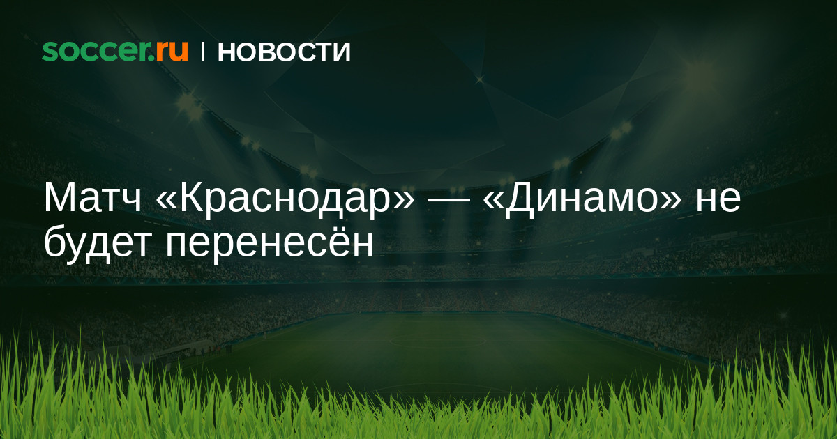 Как сообщает «Матч ТВ», угрозы переноса матча «Краснодар» — «Динамо» из-за погодных условий нет.