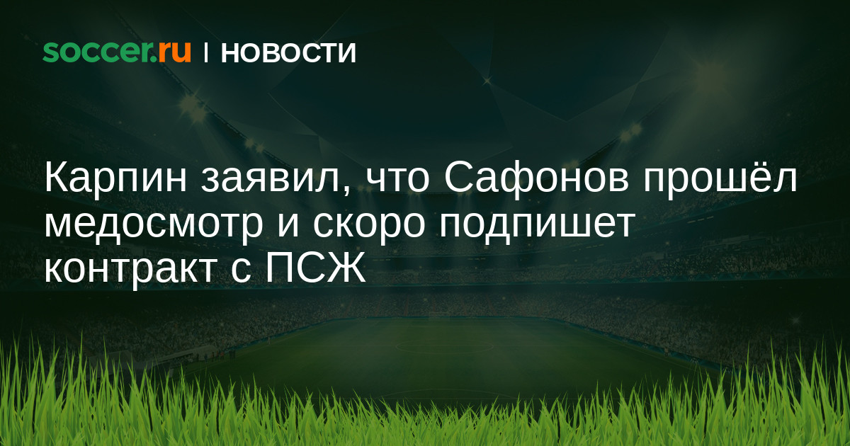 Главный тренер сборной России Валерий Карпин сообщил, что вратарь Матвей Сафонов успешно прошёл медосмотр перед трансфером в «Пари Сен-Жермен».