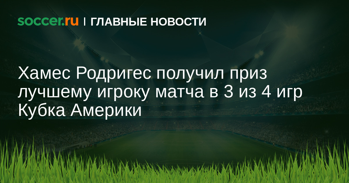 Это уже третий подобный приз Хамеса на текущем турнире. Ранее он был признан лучшим в поединках группового этапа против Парагвая и Бразилии. Всего на текущем турнире у плеймейкера 1 гол и 5 результативных передач.