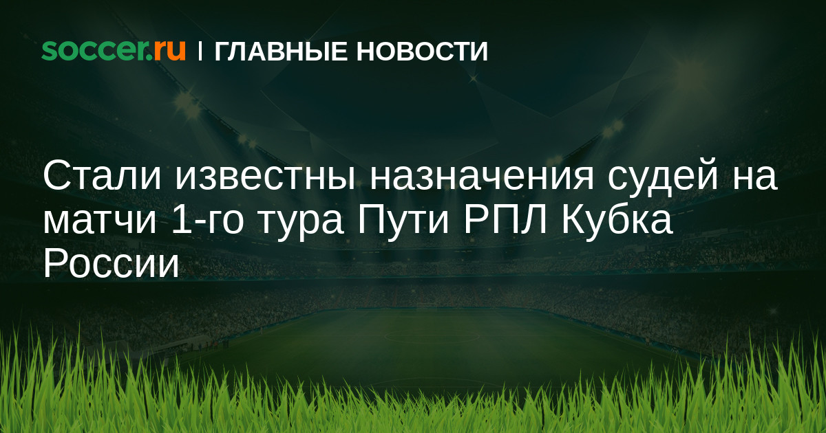Назначены арбитры и инспекторы на матчи 1-го тура группового этапа Пути РПЛ Кубка России.