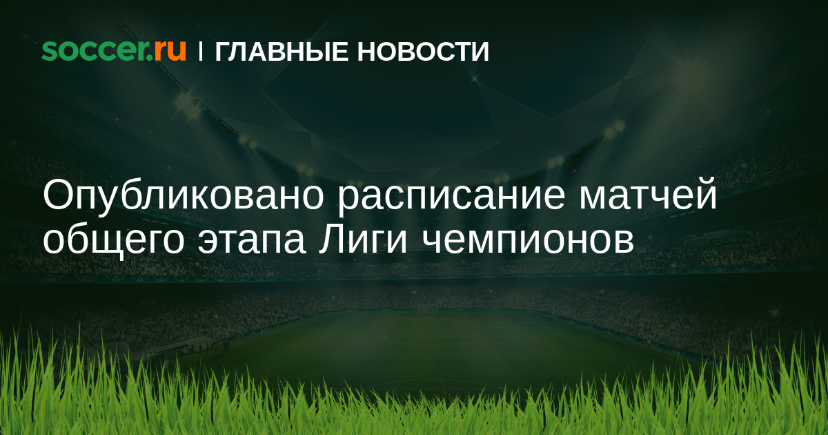 Опубликовано полное расписание всех матчей нового формата Лиги чемпионов. Общий этап турнира с участием 36 клубов пройдёт с 17 сентября по 29 января. Каждая команда проведёт 8 матчей против 8 разных соперников – 4 дома и 4 на выезде. Все игры последнего тура пройдут в один день и в одно время – 29 января в 23:00 по московскому времени.
