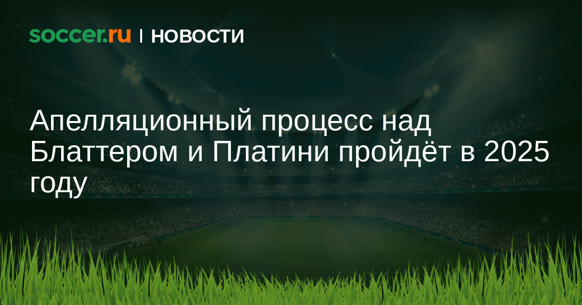 Апелляционные слушания по делу бывшего президента ФИФА Йозефа Блаттера и экс‑главы УЕФА Мишеля Платини состоятся в следующем году в Швейцарии. Судебный процесс будет проходить в чрезвычайной апелляционной палате суда кантона Базель‑Ланд с 3 по 25 марта 2025 года.