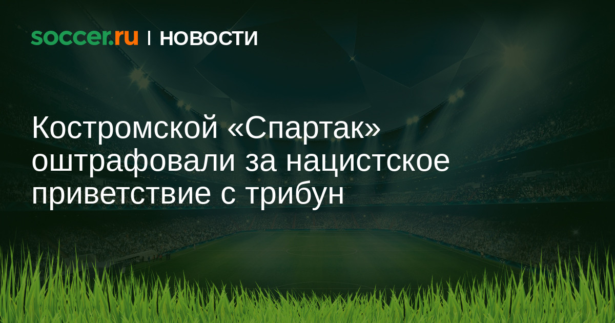 Костромской «Спартак» оштрафован на 50 тысяч рублей за нацистское приветствие с фанатской трибуны в матче Кубка России с «Енисеем». Об этом источнику сообщил глава Контрольно‑дисциплинарного комитета Российского футбольного союза (КДК РФС) Артур Григорьянц.