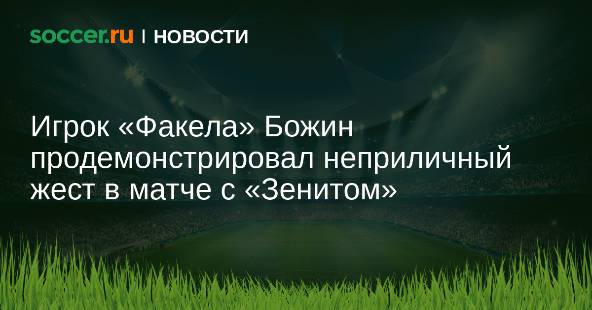 Во время матча 20-го тура Российской Премьер-Лиги между «Факелом» и «Зенитом» (0:2), состоявшегося 8 марта в Воронеже, защитник хозяев Сергей Божин показал неприличный жест. Главным арбитром встречи был Виталий Мешков.