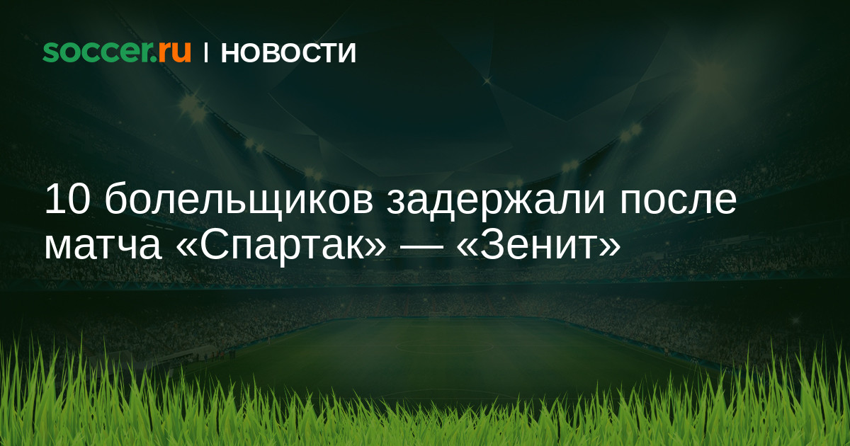 Полицией были задержаны как минимум 10 болельщиков на матче РПЛ между «Спартаком» и «Зенитом» в Москве за нарушение правил поведения на стадионе. Об этом источнику сообщили в Тушинском суде Москвы, в который поступили соответствующие протоколы об административном правонарушении.