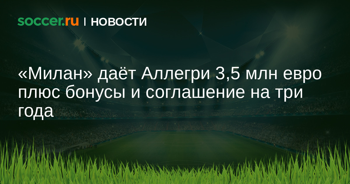 «Милан» предлагает Массимилиано Аллегри трёхлетний контракт с зарплатой 3,5 млн евро плюс бонусы, но тренер хочет 5 млн евро в год с премиальными.