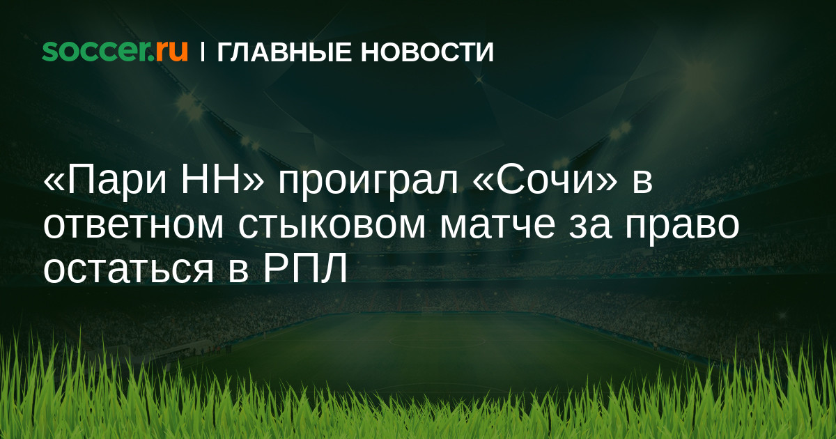 «Пари НН» потерпел поражение от «Сочи» в ответном стыковом матче за право сохранить место в РПЛ на следующий сезон (1:3).