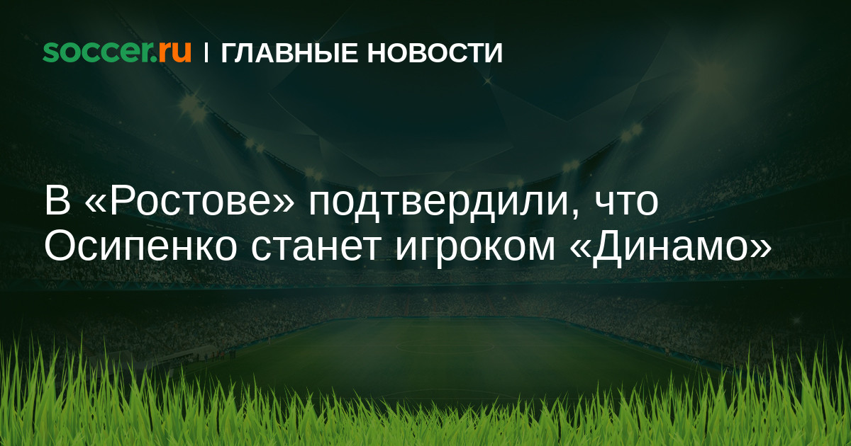 Президент «Ростова» Арташес Арутюнянц в интервью источнику подтвердил переход центрального защитника Максима Осипенко в московское «Динамо».
