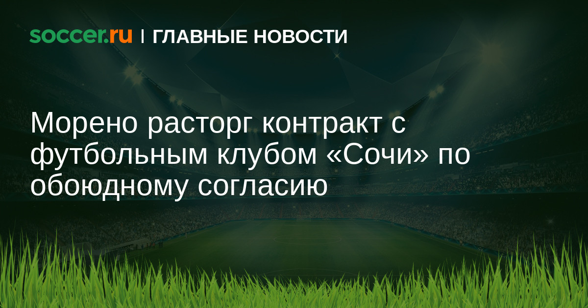 Испанец Роберт Морено расторг контракт с футбольным клубом «Сочи» по обоюдному согласию сторон. Об этом сообщает пресс-служба клуба.