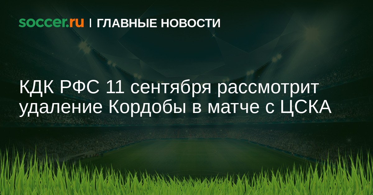 Контрольно-дисциплинарный комитет Российского футбольного союза (КДК РФС) 11 сентября рассмотрит удаление нападающего «Краснодара» Джона Кордобы в матче седьмого тура Мир — Российской премьер-лиги (РПЛ) с ЦСКА. Об этом сообщил глава комитета Артур Григорьянц.