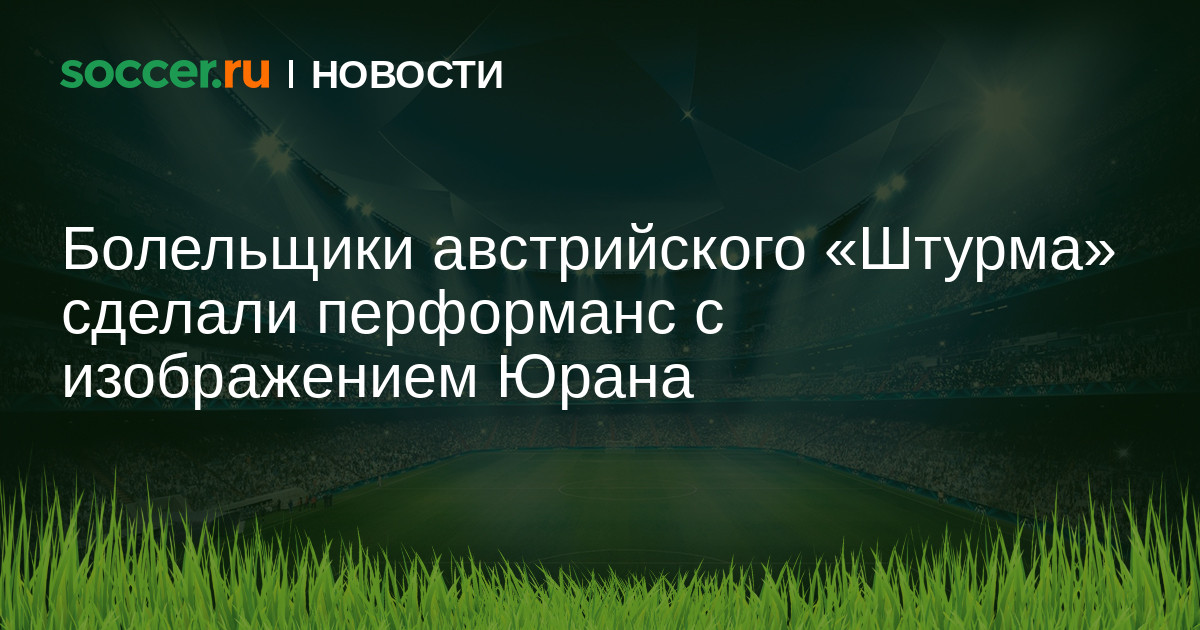 Болельщики австрийского футбольного клуба «Штурм» растянули баннер с изображением российского нападающего Сергея Юрана перед матчем второго тура общего этапа Лиги Европы против шотландского «Рейнджерс».