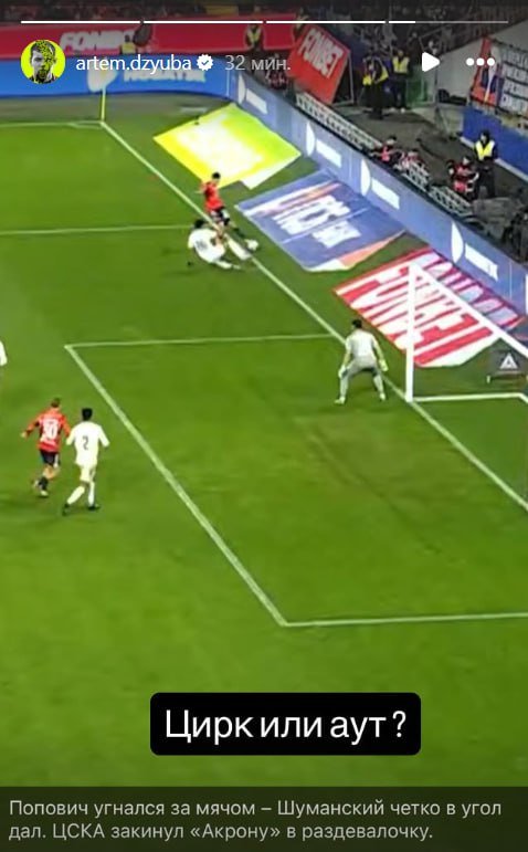 «Цирк или аут?» — задался вопросом Дзюба, приложив к публикации в соцсети скриншот из трансляции игры с моментом первого забитого мяча.
