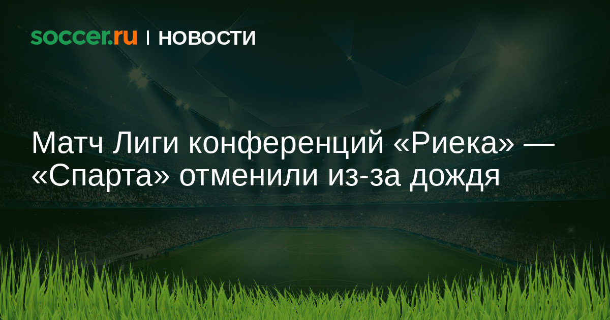 Матч второго тура общего этапа футбольной Лиги конференций между хорватской «Риекой» и чешской «Спартой» не будет доигран в четверг из-за погодных условий. Об этом сообщили пресс-службы клубов.