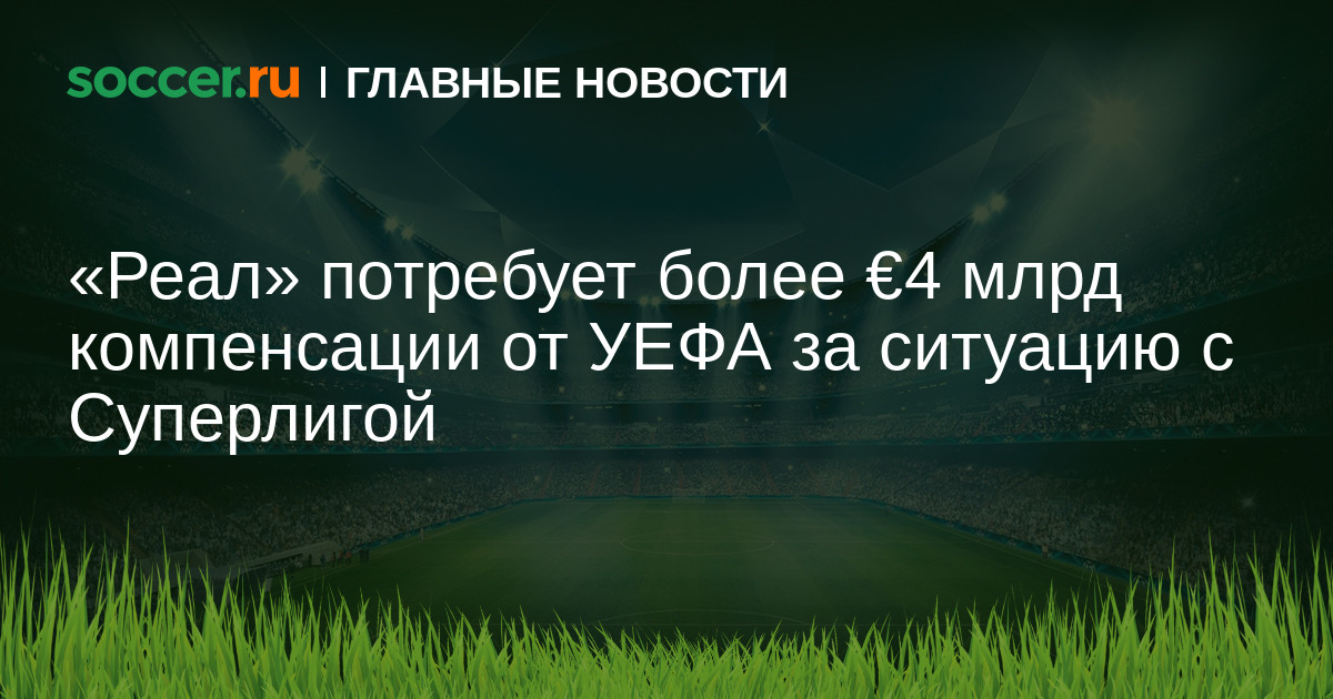 Испанский «Реал» намерен потребовать от Союза европейских футбольных ассоциаций (УЕФА) возмещения ущерба в размере более €4 млрд за предполагаемые убытки, понесенные клубом после того, как организация заблокировала предложения о создании Суперлиги. Об этом сообщила газета Financial Times (FT) со ссылкой на источники.