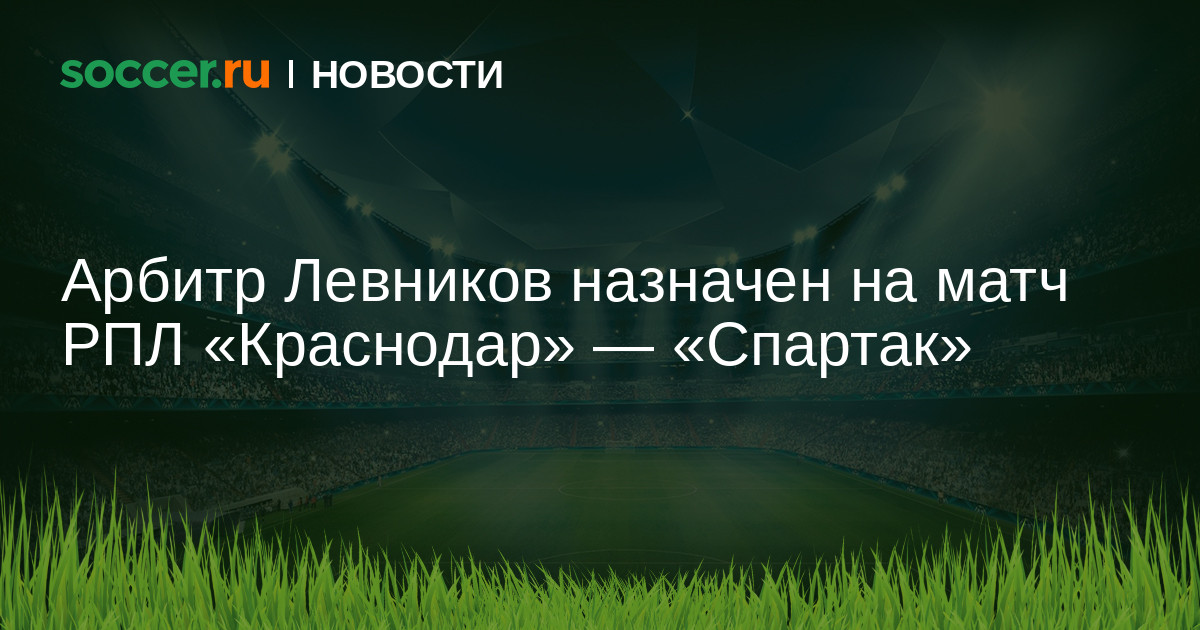 Кирилл Левников назначен главным судьей матча 14-го тура Российской премьер-лиги (РПЛ) между «Краснодаром» и московским «Спартаком». Об этом сообщила пресс-служба Российского футбольного союза (РФС).