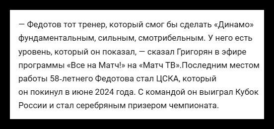 Ранее председатель совета директоров московского «Динамо» Александр Ивлев сообщил журналистам, что до конца 2025 года будет принято решение о будущем исполняющего обязанности главного тренера команды Ролана Гусева.