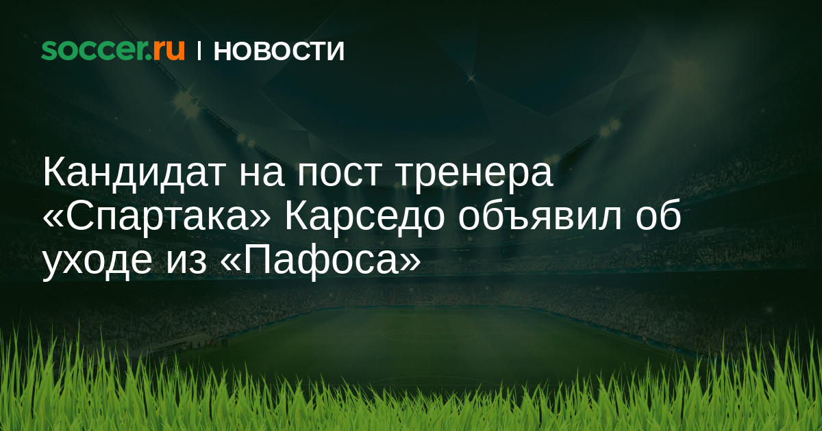 Кандидат на пост главного тренера московского «Спартака» испанец Хуан Карлос Карседо объявил об уходе из кипрского «Пафоса». Об этом он сообщил после матча чемпионата Кипра с «Аполлоном» (1:2).