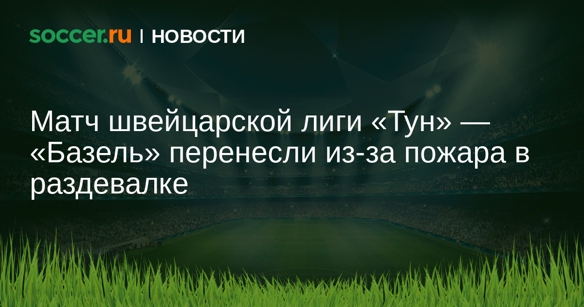 Матч чемпионата Швейцарии между «Туном» и «Базелем» сегодня не состоится из-за пожара в раздевалке гостевой команды на стадионе «Сент Якоб-Парк».