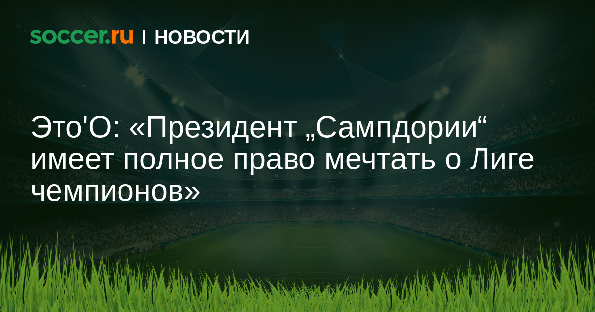 Новичок «Сампдории» Самуэль Это'О отметил, что поддерживает амбициозные планы президента генуэзского клуба Массимо Ферреро, который в ближайшем будущем желает видеть свою команду в Лиге чемпионов.