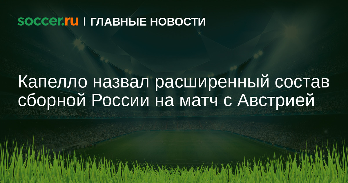 Тренерский штаб национальной сборной России во главе с Фабио Капелло определился с расширенным списком игроков, которые могут быть вызваны для подготовки к товарищескому матчу с Беларусью (7 июня, Химки, 18.00) и отборочному матчу Чемпионата Европы-2016 с Австрией (14 июня, Москва, 19.00).