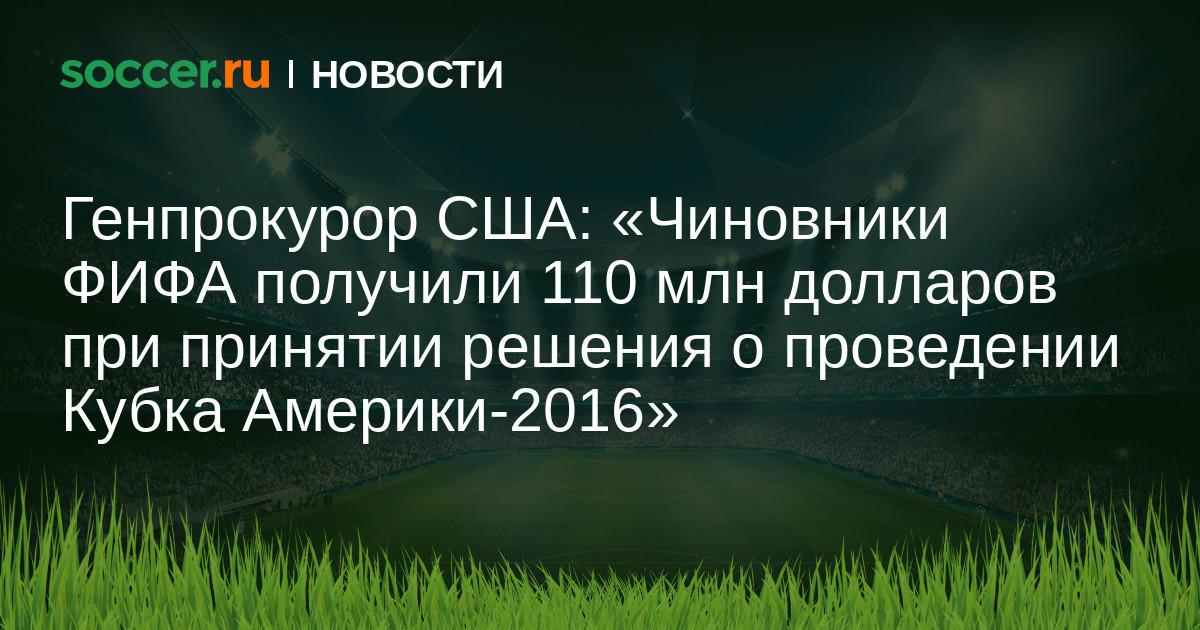 - Чиновники получили 110 миллионов долларов в качестве взяток при принятии решения о проведении Кубка Америки-2016 в США.