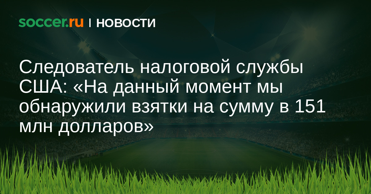 Следователь криминального отдела налоговой службы США Ричард Уэбер сообщил, что в рамках расследования о коррупции в ФИФА на данный момент обнаружены взятки на сумму в 151 млн долларов.
