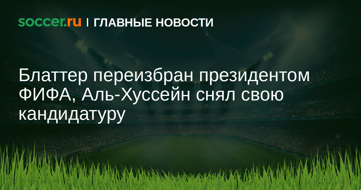 Президент ФИФА Зепп Блаттер не покинет свой пост. Швейцарец переизбран на пятый срок. Принц Али бин Аль-Хуссейн снял свою кандидатуру перед вторым раундом голосования.