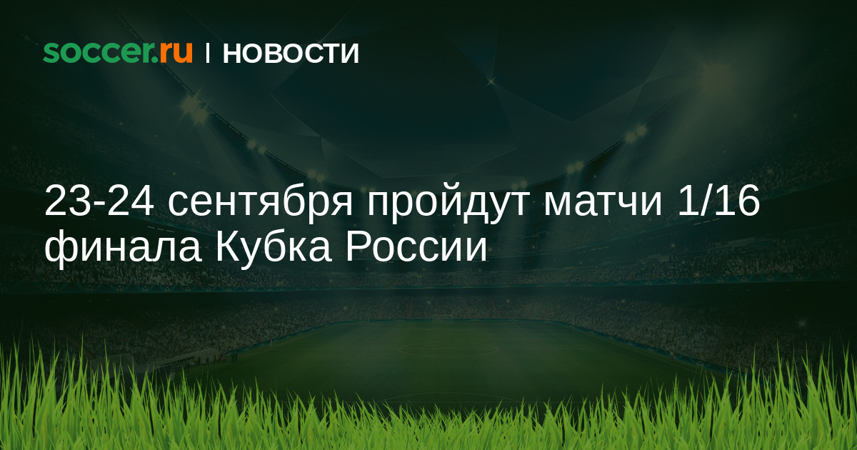 На следующей неделе пройдут матчи 1/16 финала Кубка России по футболу сезона-2015/16. Девять игр состоится 23 сентября и семь — 24-го. Матчи пройдут на полях клубов ФНЛ и ПФЛ. Время начала ряда встреч уточняется.