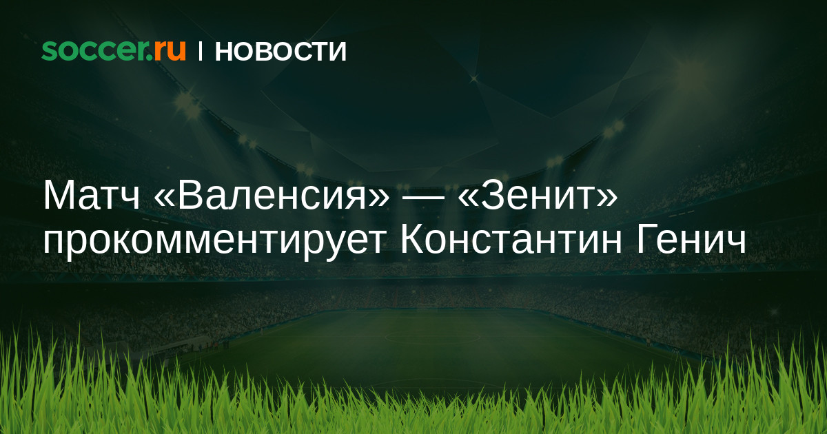 Комментатор НТВ-Плюс Константин Генич отработает матч «Валенсия» — «Зенит» со стадиона «Месталья». Прямая трансляция пройдет на федеральном НТВ.