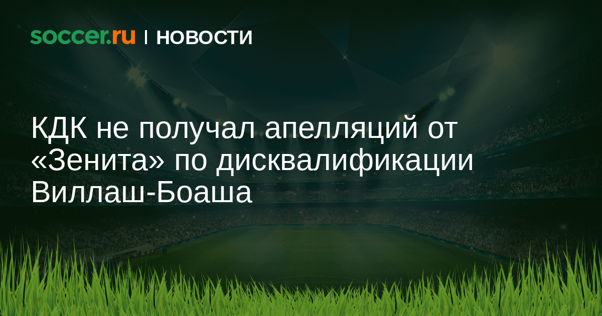 Председатель КДК РФС Артур Григорьянц сообщил, что «Зенит» не стал подавать апелляцию на решение о дисквалификации главного тренера команды Андре Виллаш-Боаша на шесть матчей.