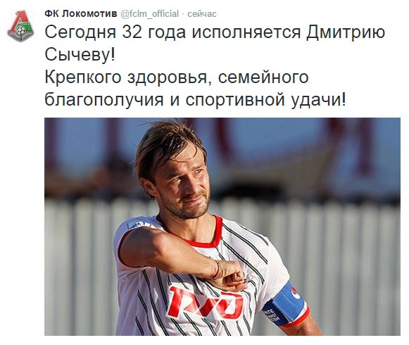 «Локомотив» поздравил нападающего Дмитрия Сычева с днем рождения. Напомним, что 32-летний форвард играет за казахский «Окжетпес» на правах аренды.
