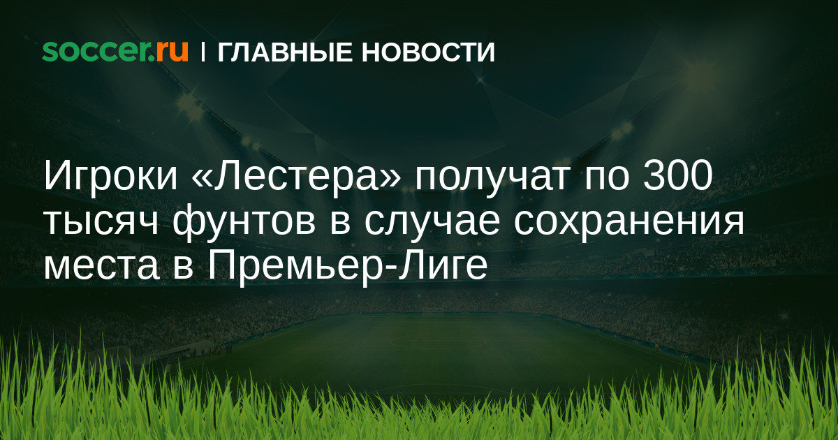 Футболисты «Лестера» получат солидную премию по итогам сезона, если команде удастся сохранить место в Премьер-Лиге. Как сообщает Daily Mail, за сохранение прописки в элите английского футбола каждому игроку команды полагается по условиям контракта 300 тысяч фунтов стерлингов. Для досрочного обеспечения места в Премьер-Лиге достаточно набрать 40 очков, а «Лестер» в настоящее время лидирует в турнире с 35 очками.