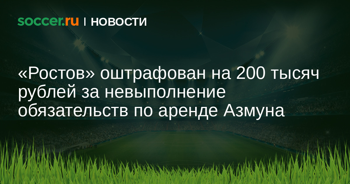 РФС оштрафовал «Ростов» на 200 тысяч рублей за неисполнение постановления Палаты по разрешению споров. Ростовчане были наказаны за невыполнение обязательств перед «Рубином» по аренде нападающего Сердара Азмуна.