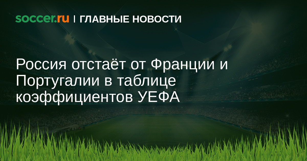 По итогам очередной еврокубковой недели отставание России от Франции и Португалии в таблице коэффициентов УЕФА увеличилось. Все три российских клуба проиграли, что не позволило увеличить коэффициент, который сейчас составляет 50,882 балла. Россия занимает седьмое место. Преследуемые ею Франция и Португалия свои коэффициенты увеличили до 51,916 и 51,748 соответственно. Отметим, что борьба за шестое место важна, поскольку эта позиция дает право заявлять от страны шесть команд в еврокубки: по три в Лигу чемпионов и Лигу Европы.
