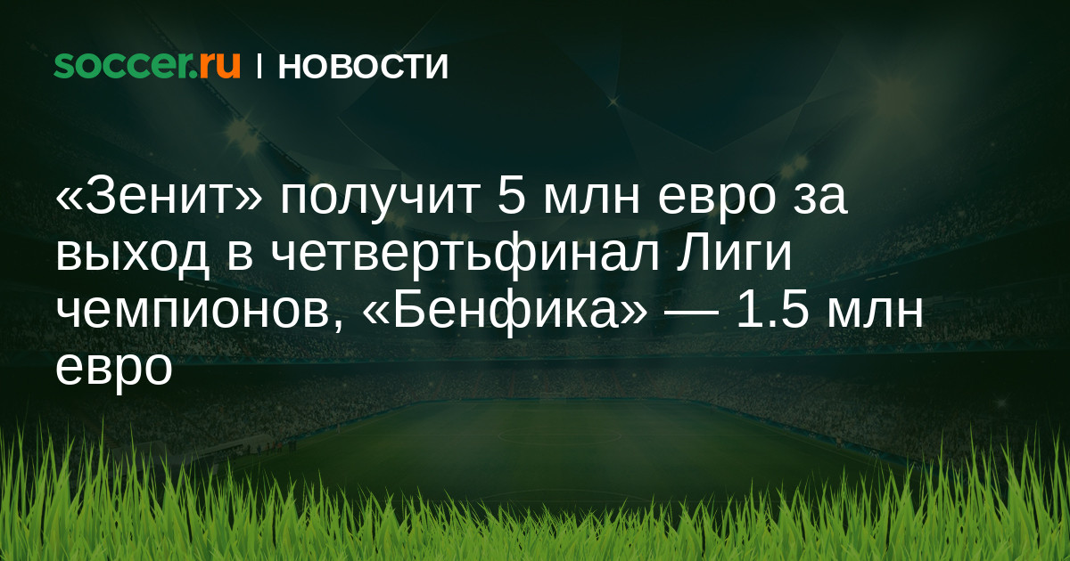 Известный итальянский журналист Танкреди Палмери на своей странице в сети Twitter написал, что премиальные «Зенита» за выход в четвертьфинал Лиги чемпионов составят 5 млн евро.