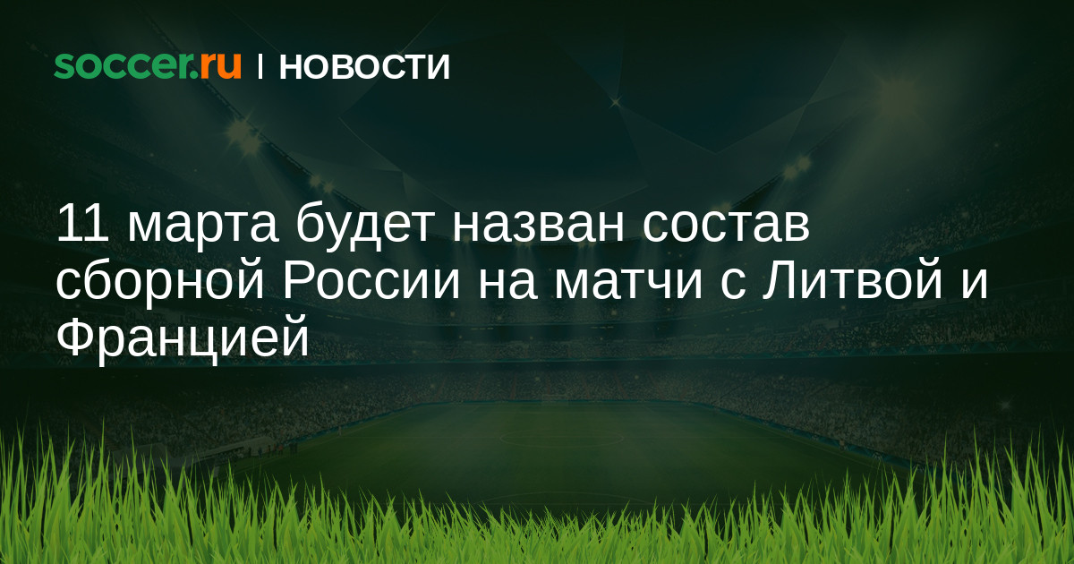Наставник сборной России Леонид Слуцкий назовет состав команды на товарищеские матчи с Литвой и Францией 11 марта. Игра с литовцами пройдет в Москве 26 марта на «Открытие Арене», а с французами — 29 марта в Париже на «Стад де Франс».