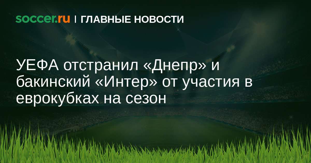 Как и ожидалось, УЕФА наказал «Днепр» за нарушение регламента в области финансового контроля. Украинский клуб дисквалифицирован на один сезон от участия в еврокубках, если пробьется туда в течение ближайших трех сезонов. Такое же наказание по тем же основаниям ждет бакинский «Интер» и румынский «Тыргу-Муреш».