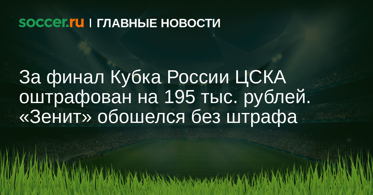 «По финальному матчу Кубка России ЦСКА – „Зенит“ мы рассмотрели сразу несколько эпизодов. За скандирование нецензурной лексики болельщиками ЦСКА клуб оштрафован на 30 тыс. рублей. За использование пиротехнических изделий болельщиками „армейский» клуб оштрафован на 100 тыс. рублей. За появление посторонних лиц на поле футбольный клуб ЦСКА оштрафован на 15 тыс. рублей, а за необеспечение безопасности ЦСКА оштрафован на 50 тыс. рублей".