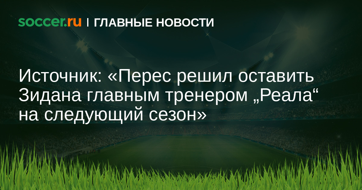 Источник, близкий к президенту «Реала» Флорентино Пересу, сообщил о том, что руководитель клуба принял решение оставить на тренерском мостике команды в следующем сезоне ее нынешнего тренера Зинедина Зидана: