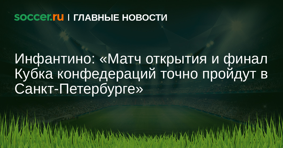«Матч открытия и финал Кубка конфедераций пройдут в Санкт-Петербурге, в этом нет никаких сомнений. Мы получили все необходимые гарантии. Кубок конфедераций — очень важный турнир, и образ Санкт-Петербурга будет продемонстрирован всему миру. Власти города прекрасно понимают, какое значение имеет этот турнир.