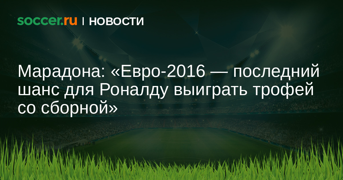 Легендарный аргентинец Диего Марадона уверен, что сегодняшний матч станет последним шансом для форварда португальцев Криштиану Роналду выиграть трофей со сборной. Напомним, сегодня вечером состоится финал Евро-2016 Португалия — Франция.