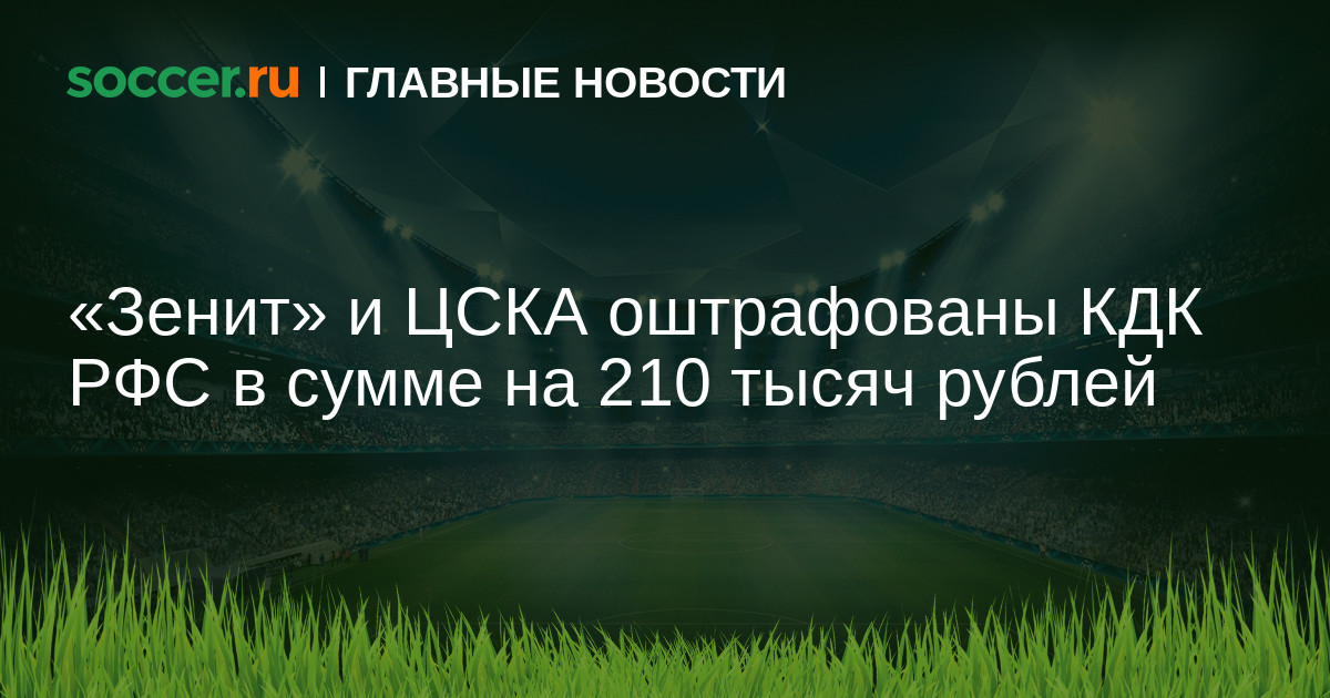 КДК РФС вынес решение по поводу неподобающего поведения болельщиков во время матча за Суперкубок России между ЦСКА и «Зенитом» (0:1). По итогам заседания КДК, принято решение оштрафовать обе команды на 100 тысяч рублей за использование фанатами пиротехники, а «Зенит» заплатит еще 10 тысяч за скандирование болельщиками ненормативной лексики.